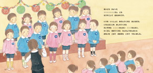 ![]() 16〜17ページ あたらしい せいふく ぴかぴかの つくえや きょうかしょに かこまれて ●●ちゃんは ごきげんです。 「ほら、みて。だいすきな あかいろの ランドセル」 けれど 「おともだちは できるかな。 おべんきょうは できるかな」 すこし しんぱいに なりました。 |