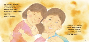 ![]() 18〜19ページ (18ページ) その ようすをみて おとうさんは やさしく ほほえみながら いいました。 「しょうがっこうって たのしいよ。 おともだちも いっぱいできるよ。 おべんきょうだって しんぱい いらない。 ●●くん かぞくみんなが おうえんして いるからね」 (19ページ) おかあさんは そっと だきよせて やさしく せなかを なでました。 「だいじょうぶ。だいじょうぶ」 ●●くんは うれしくなって おかあさんを ぎゅっと つよく だきしめました。 |