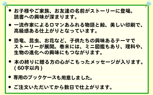 自分が主人公になれる「世界でたった一冊の」オリジナル絵本です。