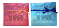 透明のPP袋の上から、ピンクかブルーの不織布袋に入れ、