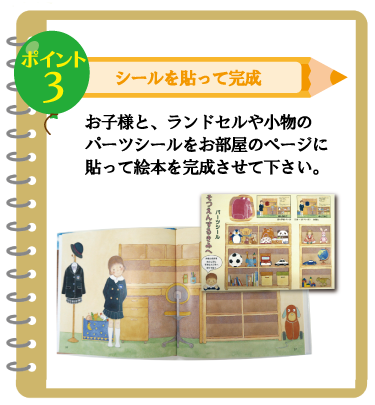 ●絵本には、男の子用と女の子用があります。性別によってお部屋や制服が変わります。